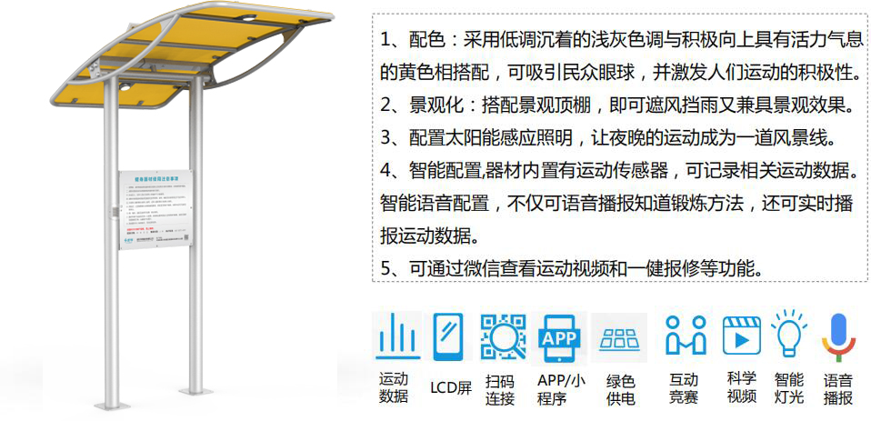 健身路徑區(qū)域內(nèi)健身器材使用注意事項說明及熱身指導(dǎo)。