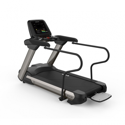 快盈VIII室內健身器材-V9老年跑步機,采用貼心的扶手安全防護,上下機輔助臺階,給予長者全方位、人性化的全程防護,接觸安全無后顧之虞。