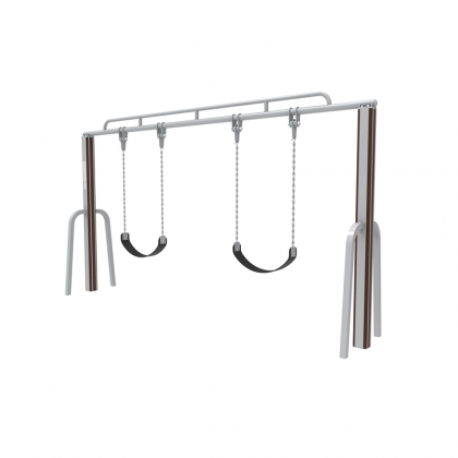 鍛煉方法:手扶吊環(huán)鏈,坐在座架上,隨著秋千的搖擺均勻用