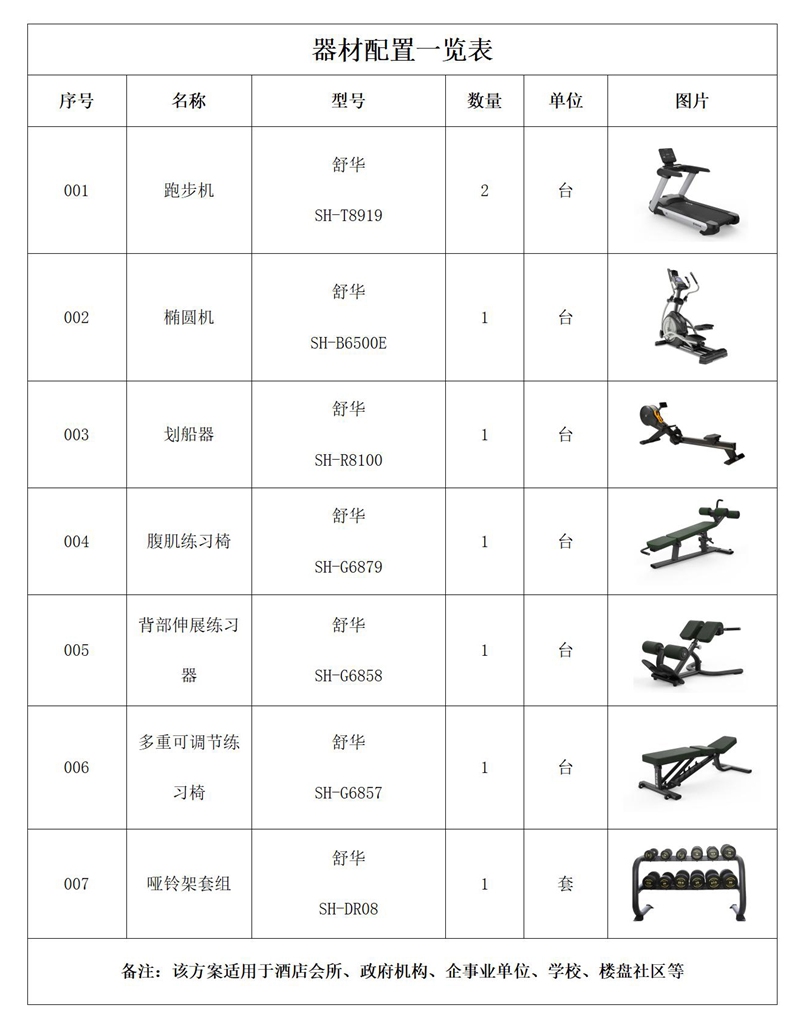 健身器材配置說(shuō)明∶