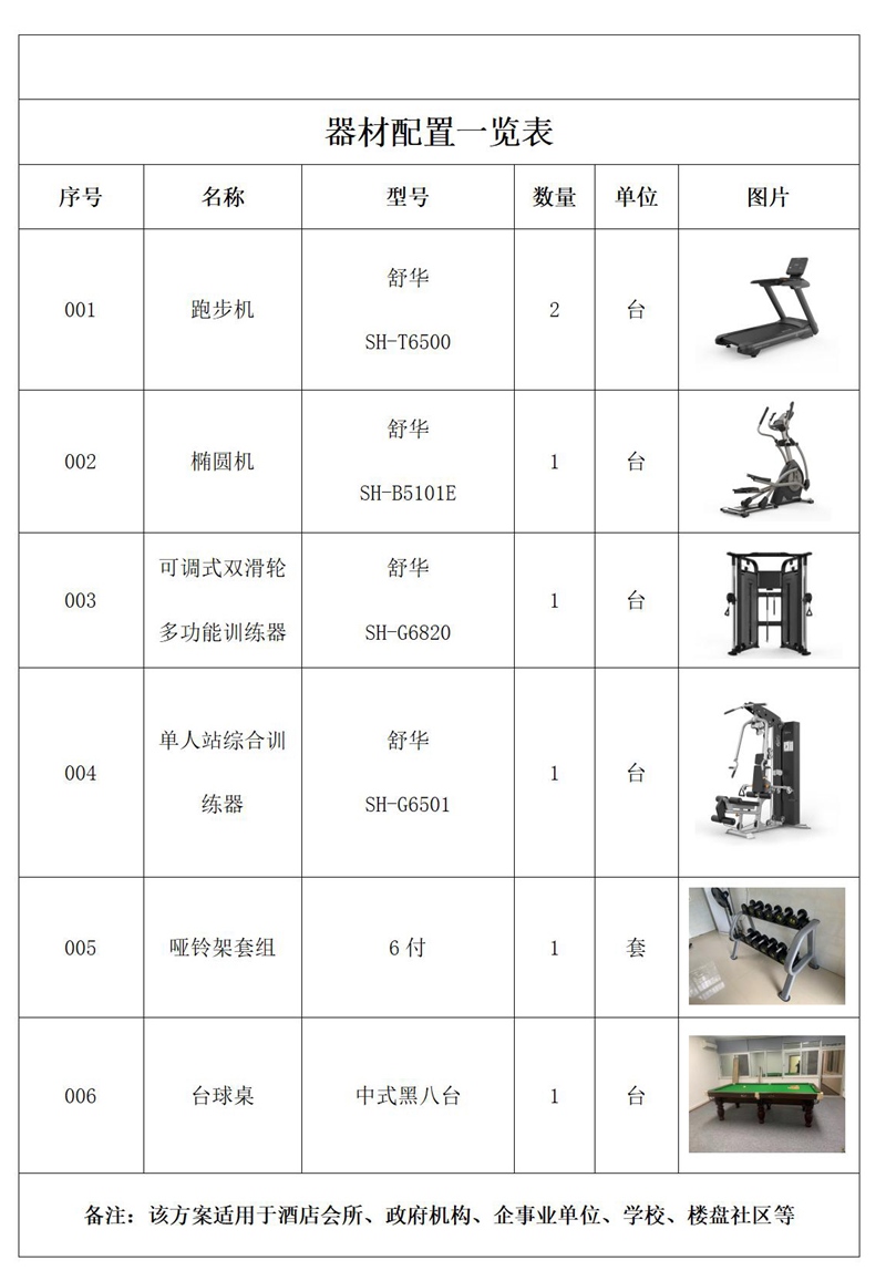 此方案要求面積小于30平米,我們會根據(jù)您個人的實際情況和場地面積而定。此方案推薦小型單位健身房、酒店會所健身房配置。能滿足5-10人同時健身使用。