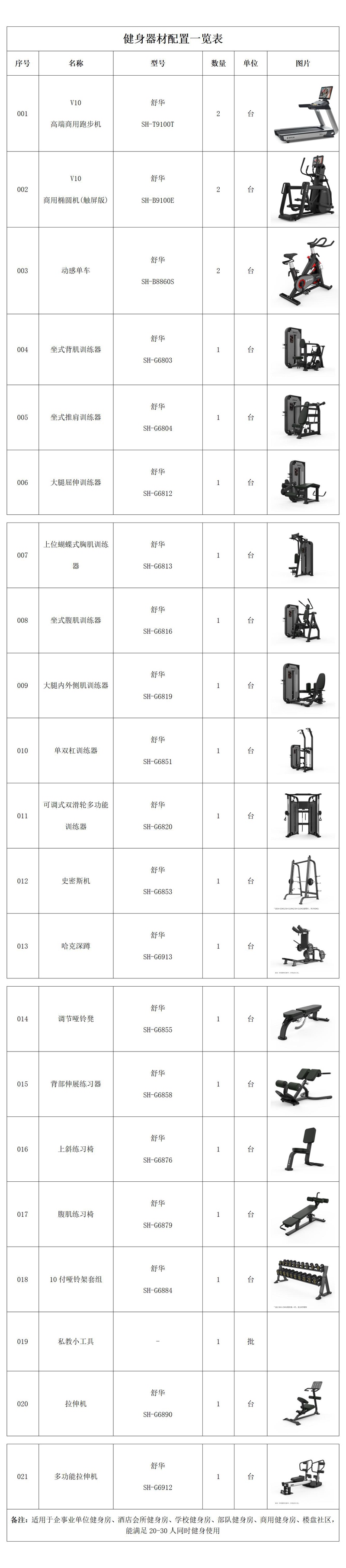 此方案要求面積小于150平米,適用于企事業(yè)單位健身房、酒店會所健身房、學(xué)校健身房、部隊(duì)健身房、商用健身房、樓盤社區(qū),能滿足20-30人同時(shí)健身使用。
