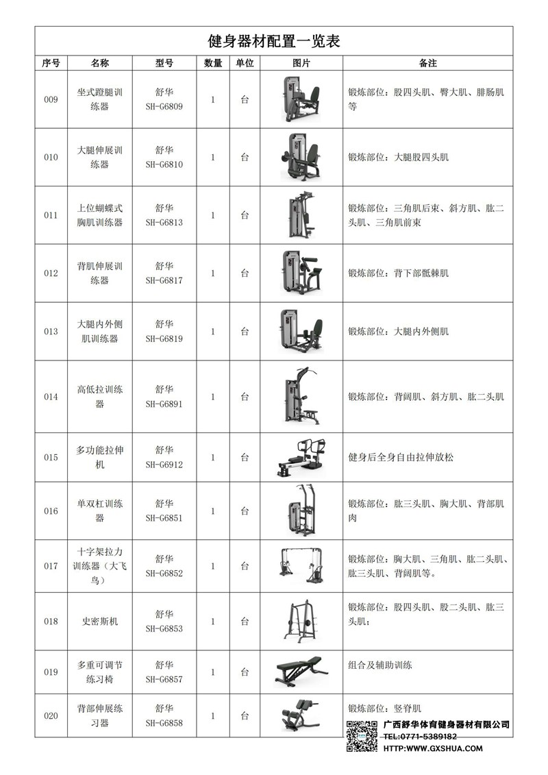 15.快盈VIII多功能拉伸機SH-G6912*2臺-多功能拉伸器專為健身人士量身打造的專業(yè)拉伸器械,可幫助用戶進行更高強度訓練前后充分拉伸身體,取得更加滿意的鍛煉效果,同時還有助于預防在運動過程中及結束后受傷風險。多功能拉伸器精心設計的多方位,人性化輔助把手,能夠多角度的刺激目標肌群,讓運動更有效,根據亞洲人身體比例,更符合人體工學原理,讓運動軌跡更科學。