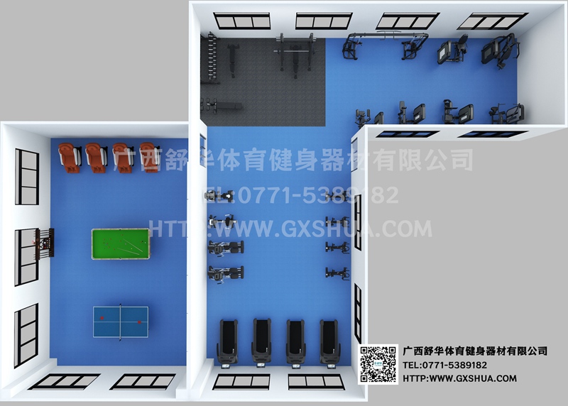 關(guān)鍵字:?jiǎn)挝唤∩矸科鞑?職工健身房配置,室內(nèi)健身器材廠家-廣西快盈VIII體育健身器材有限公司
