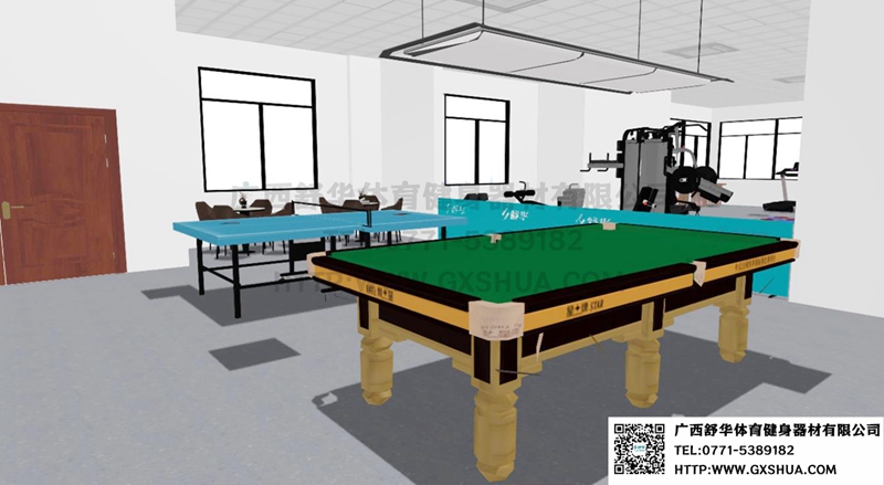 12.臺球桌*1張-單位健身房配置臺球桌,為員工的業(yè)余生活增添了樂趣和選擇。與傳統(tǒng)的健身器材鍛煉相比,臺球具有更強(qiáng)的娛樂性和趣味性,能夠吸引更多員工參與到健身活動中來,提高健身房的使用率,讓員工在工作之余有更多放松身心的方式。