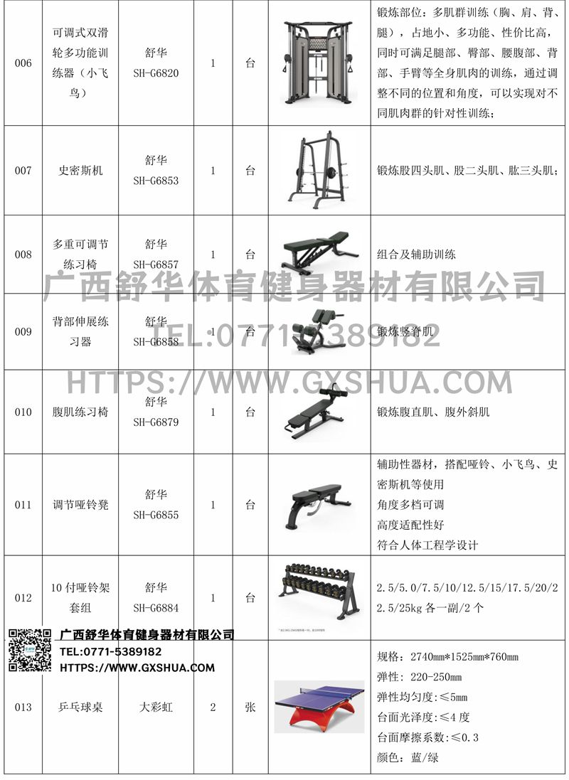 6.快盈VIII可調(diào)式雙滑輪多功能訓練器(小飛鳥)SH-G6820*1臺-鍛煉部位:多肌群訓練(胸、肩、背、腿),占地小、多功能、性價比高,同時可滿足腿部、臀部、腰腹部、背部、手臂等全身肌肉的訓練,通過調(diào)整不同的位置和角度,可以實現(xiàn)對不同肌肉群的針對性訓練;可搭配不同配件,拓展多種訓練方法,提供針對性訓練、多種組合等訓練方式,全方位激活身體機能。