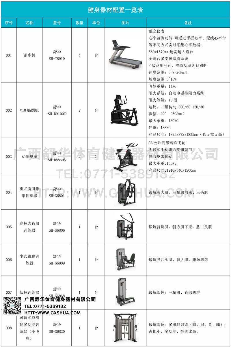 小飛鳥(1臺)、標準式框架訓練器(1臺)、多重可調(diào)節(jié)練習椅(1臺)、腹肌訓練器(1臺)、羅馬椅、10付啞鈴套組(1套)、可調(diào)啞鈴凳(1臺),可以實現(xiàn)對不同肌肉群的針對性訓練,滿足肌肉訓練需求,全方位激活身體機能。