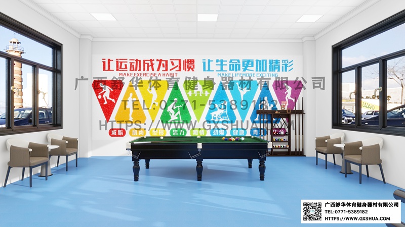 10.臺球桌*1張-單位健身房配置臺球桌,為員工的業(yè)余生活增添了樂趣和選擇。與傳統(tǒng)的健身器材鍛煉相比,臺球具有更強(qiáng)的娛樂性和趣味性,能夠吸引更多員工參與到健身活動中來,提高健身房的使用率,讓員工在工作之余有更多放松身心的方式。