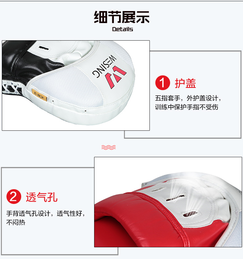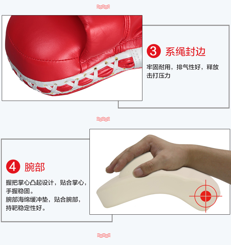 系繩封邊,牢固耐用,排氣性好,釋放擊打壓力