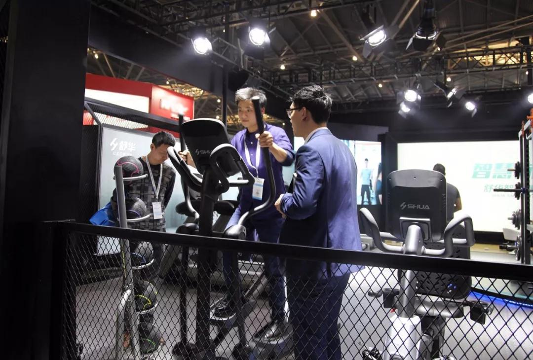 參展觀眾體驗(yàn)快盈VIII智能健身車