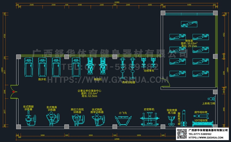 1.有氧訓(xùn)練區(qū)(約40m2)