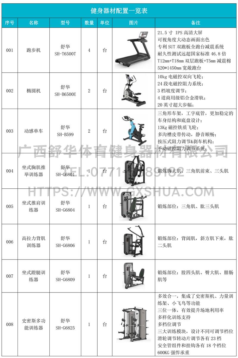 主要配置史密斯多功能訓(xùn)練器、多重可調(diào)節(jié)練習(xí)椅、10付啞鈴套組、啞鈴凳、腹肌訓(xùn)練器(各1臺(tái)),可以實(shí)現(xiàn)對(duì)不同肌肉群的針對(duì)性訓(xùn)練,滿足肌肉訓(xùn)練需求,全方位激活身體機(jī)能。